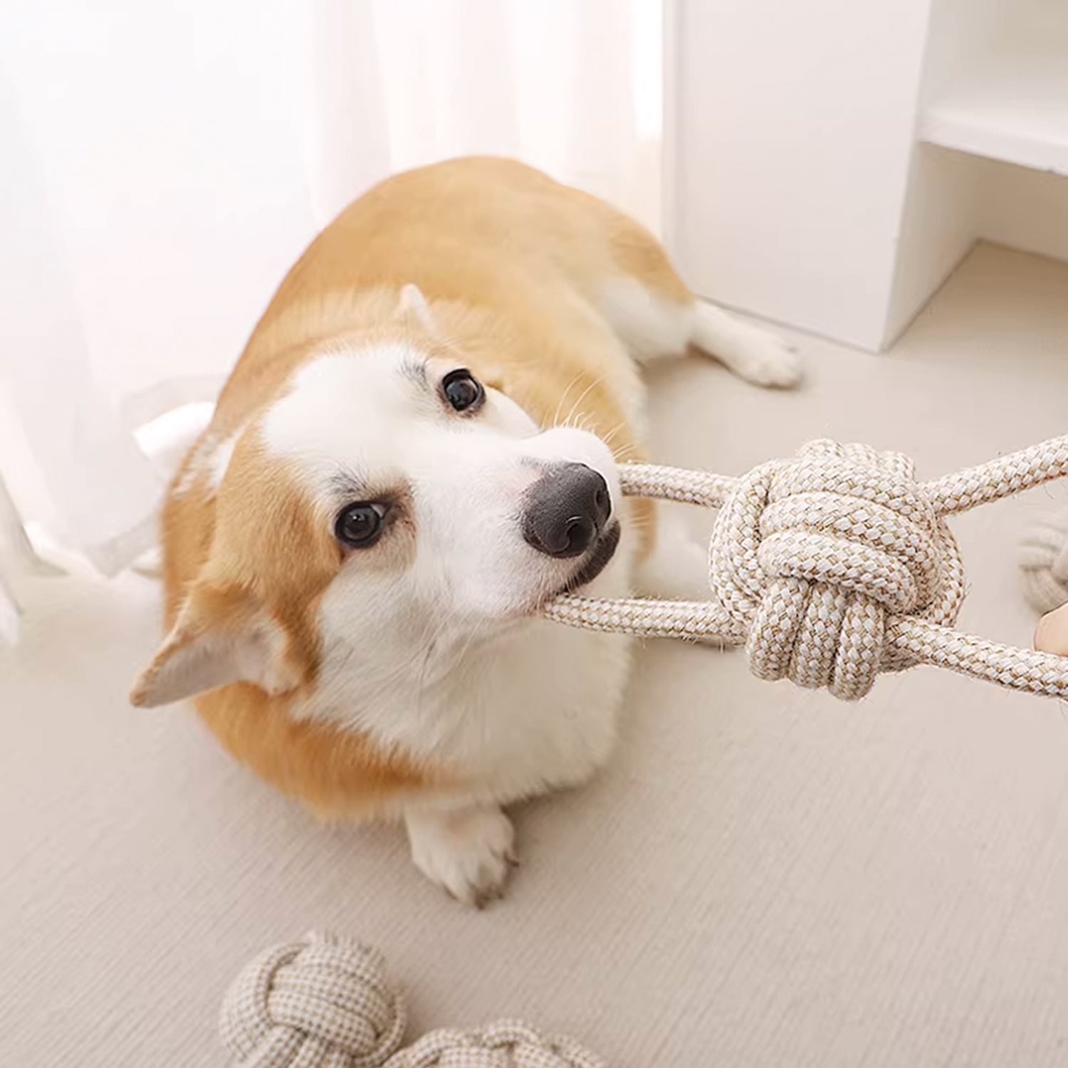 Dog chew rope toy, interactive, helps expend energy, knotted ball made of cotton and hemp rope, pet supplies.