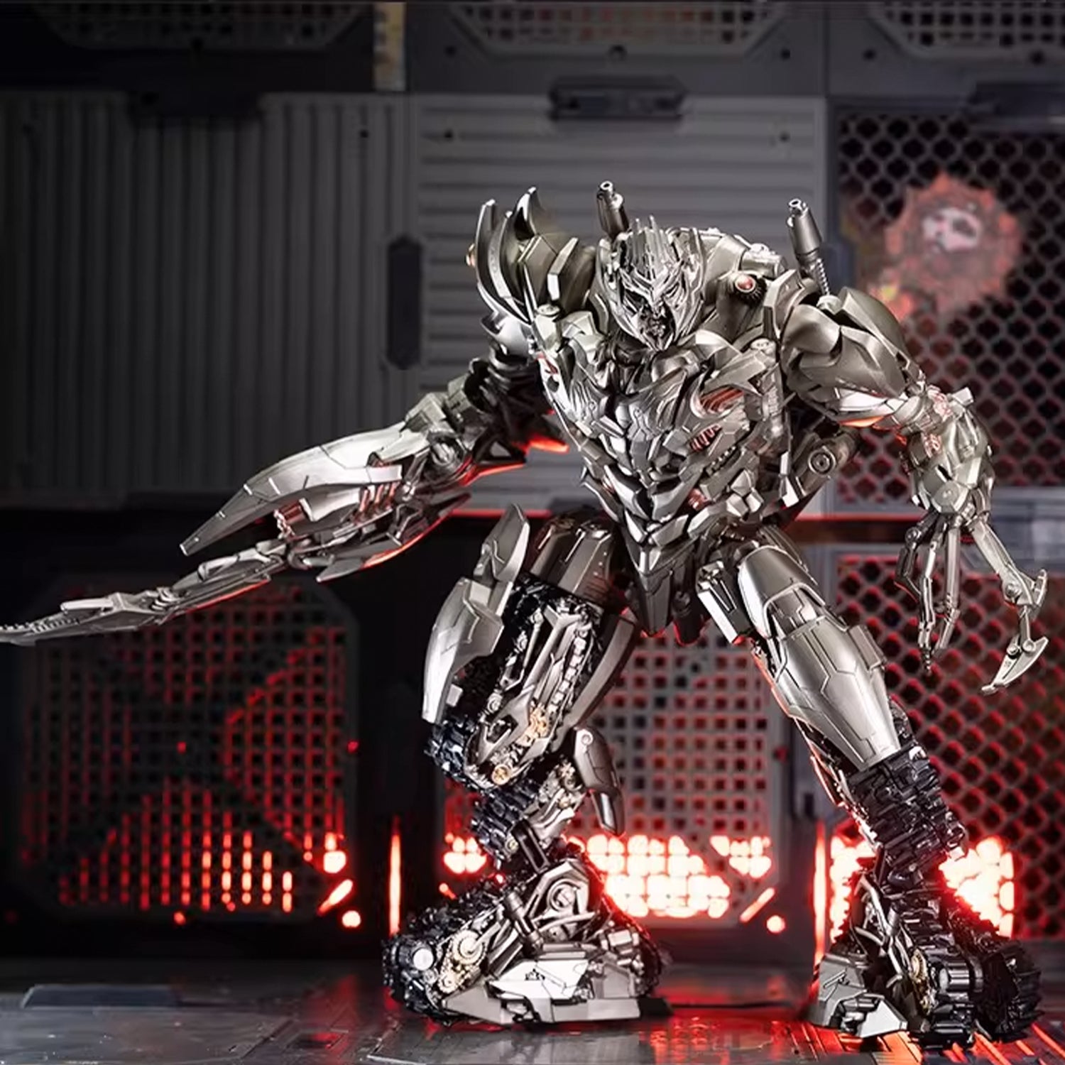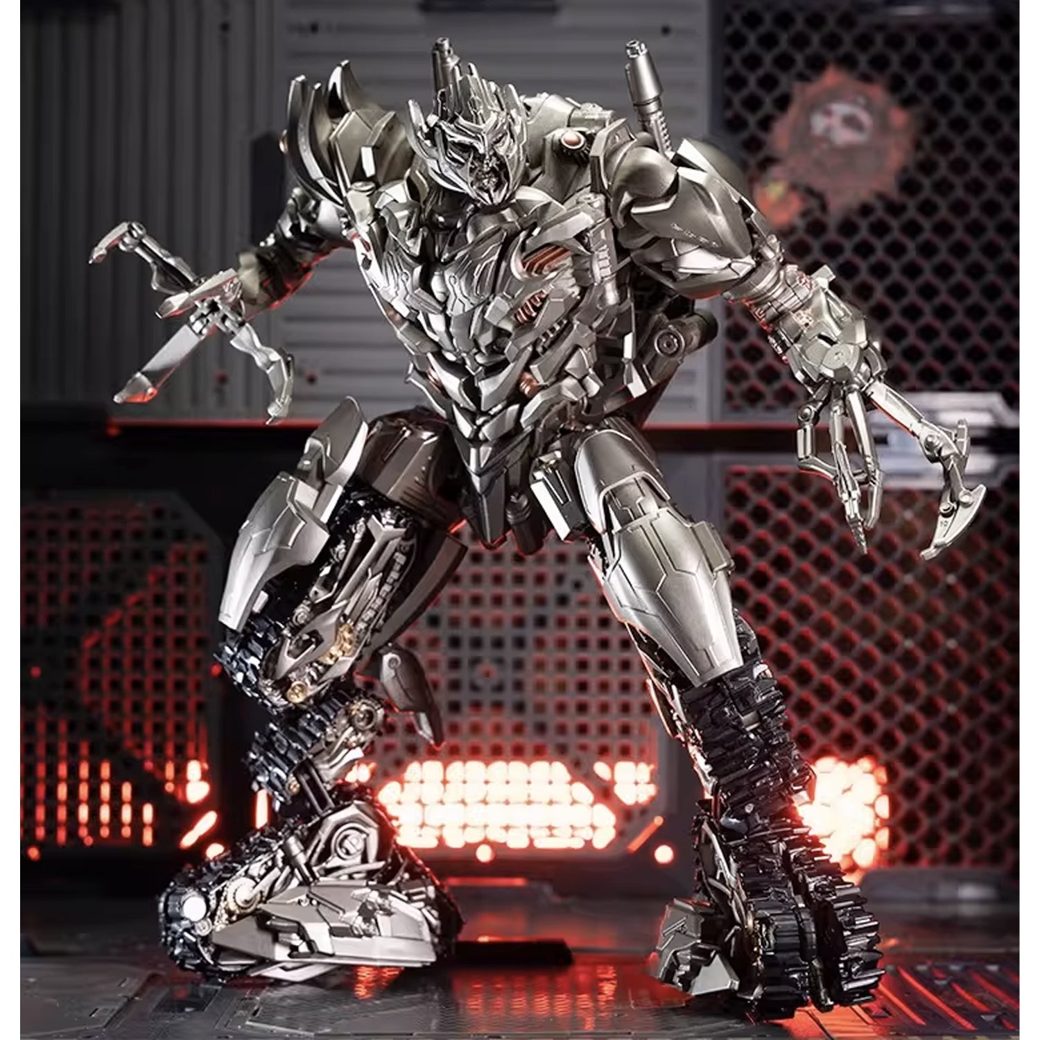 Transforming robot toys: Megatron tank, Optimus Prime car, robot alloy model.